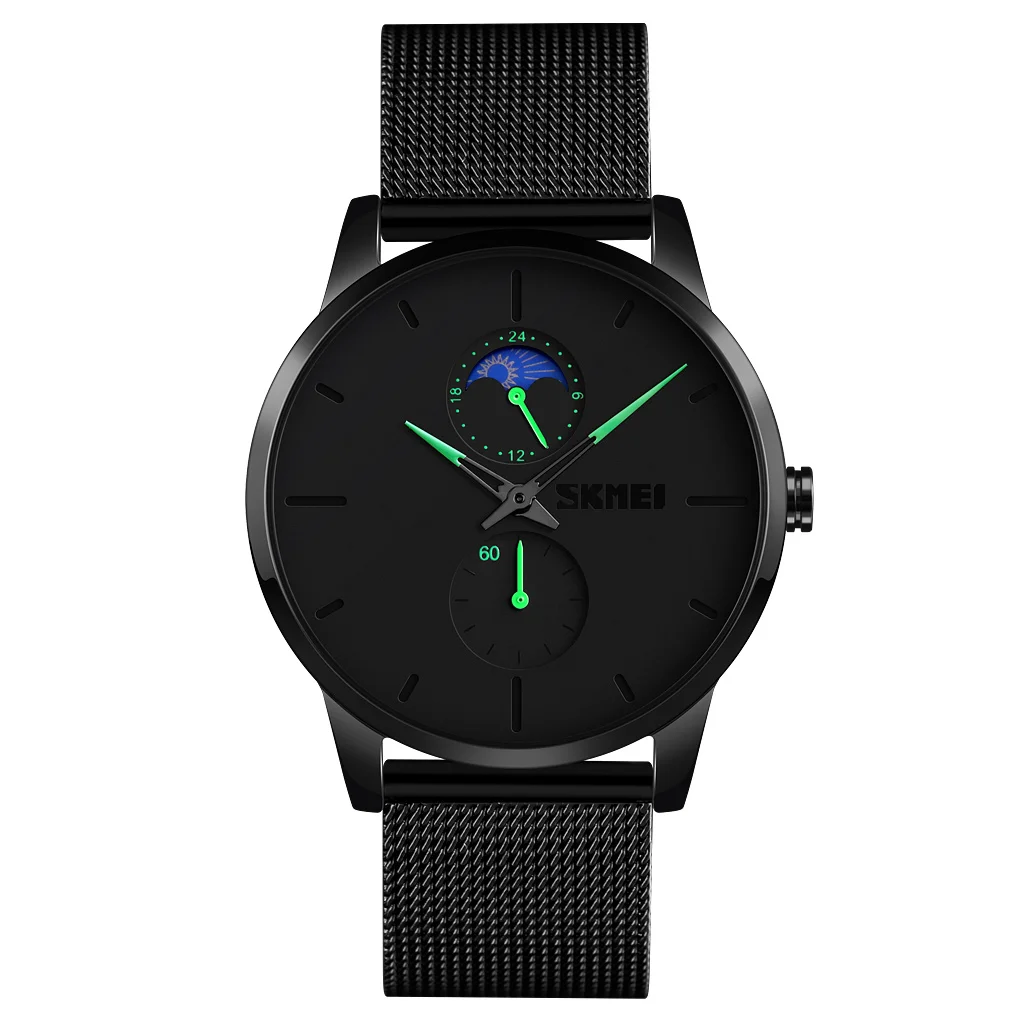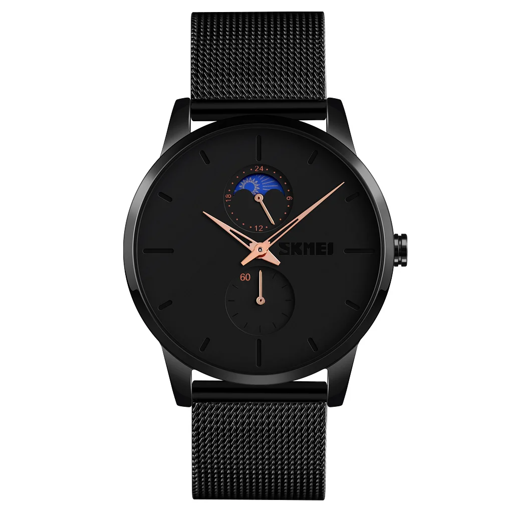 SKMEI 9208 Antique Simple Fashion Thin Case Men's Quartz Watch Luxury Classic Mesh Steel Strap Wrist Watch